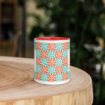 Add a splash of color to your morning coffee or tea ritual! These ceramic mugs not only have a beautiful design on them, but also a colorful rim, handle, and inside, so the mug is bound to spice up your mug rack.